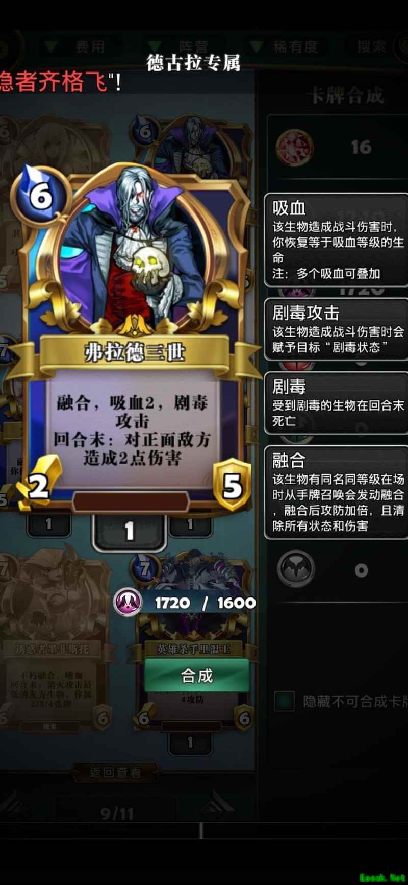对抗后期德古拉时需警惕其突袭卡牌,建议在前排位置多放置低价值单位作为掩护,主力则布置在后排发起进攻。尽量使用变形或偷取死神的手段,阻止德古拉获得复活机会,从而有效限制其战术发挥。