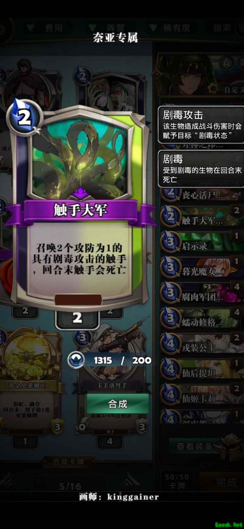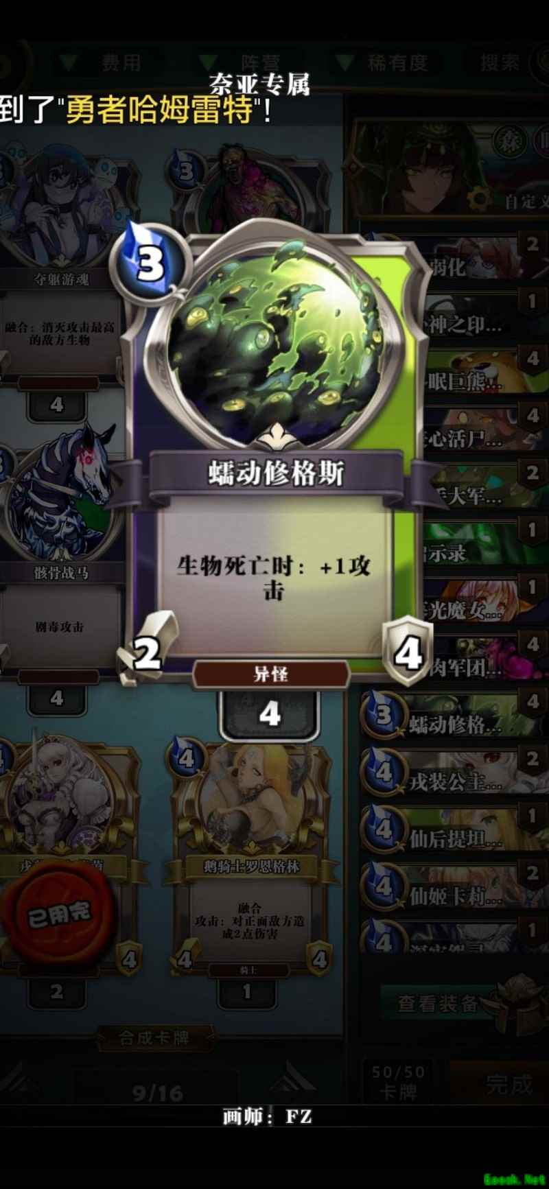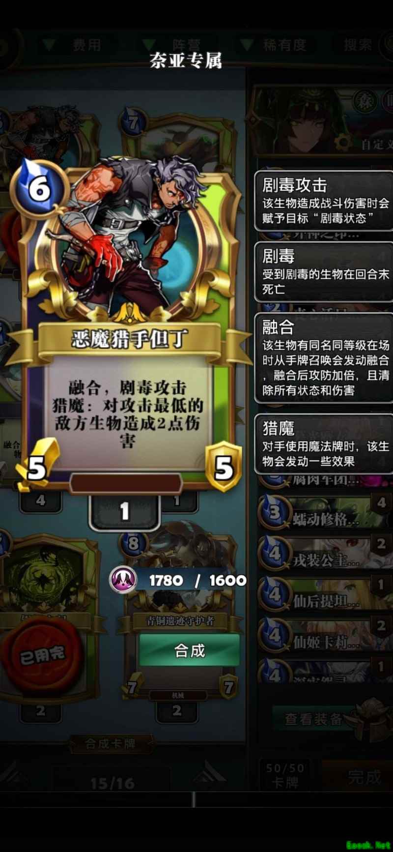 仙后提坦尼亚是绿色过牌体系的核心,搭配虫群、驯兽师等卡牌,无需依赖莉莉丝即可实现强力爆牌。战役中自带一张,若条件允许可再合成三张,临时可用仙姬替代补位。