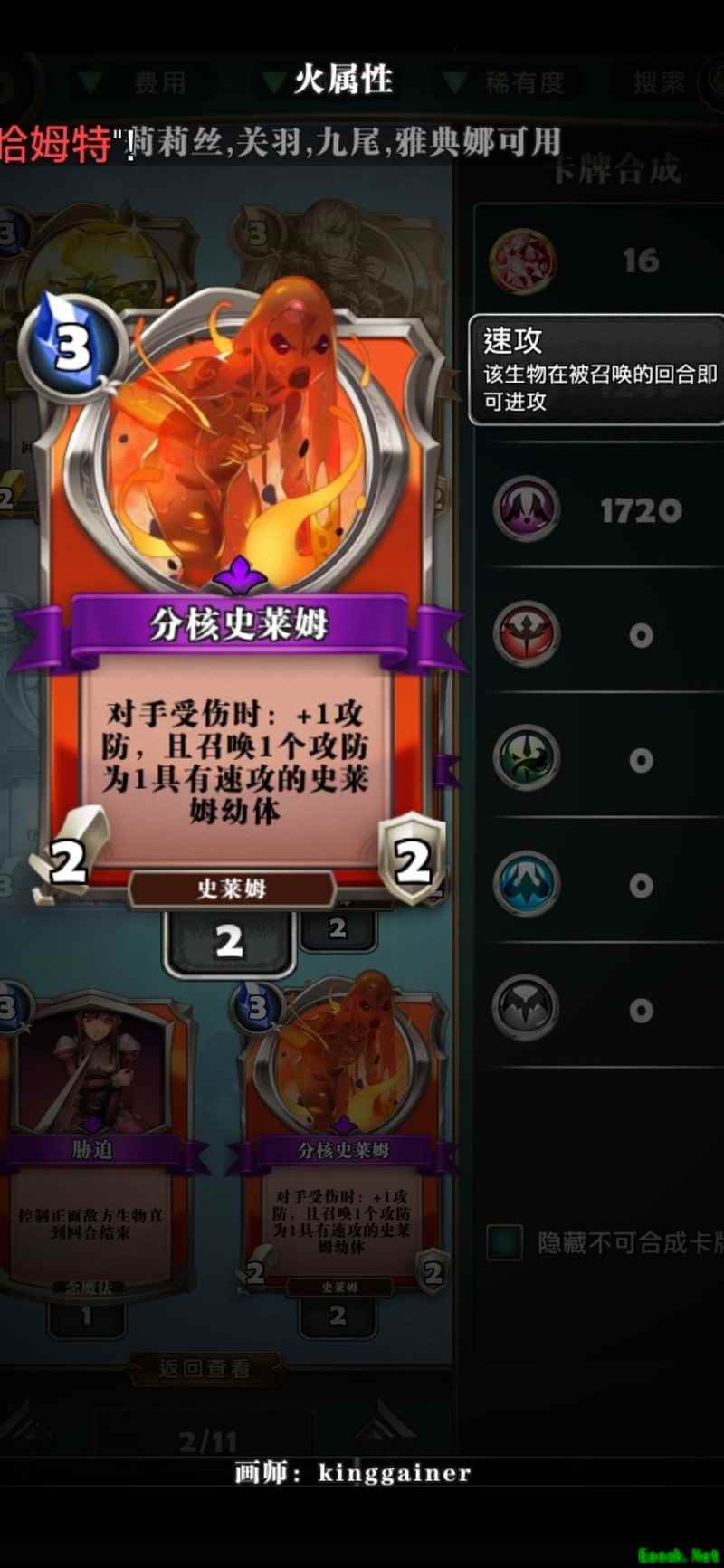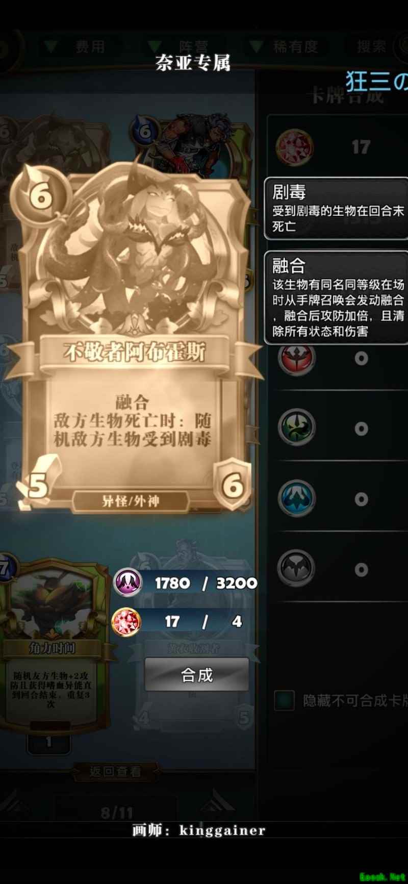 正版斜眼泰坦登场,堪称掀桌卡之父,魔眼卡的追随者。虽8费仅6血略显逊色,但搭配绿色增益卡牌可大幅提升实力。