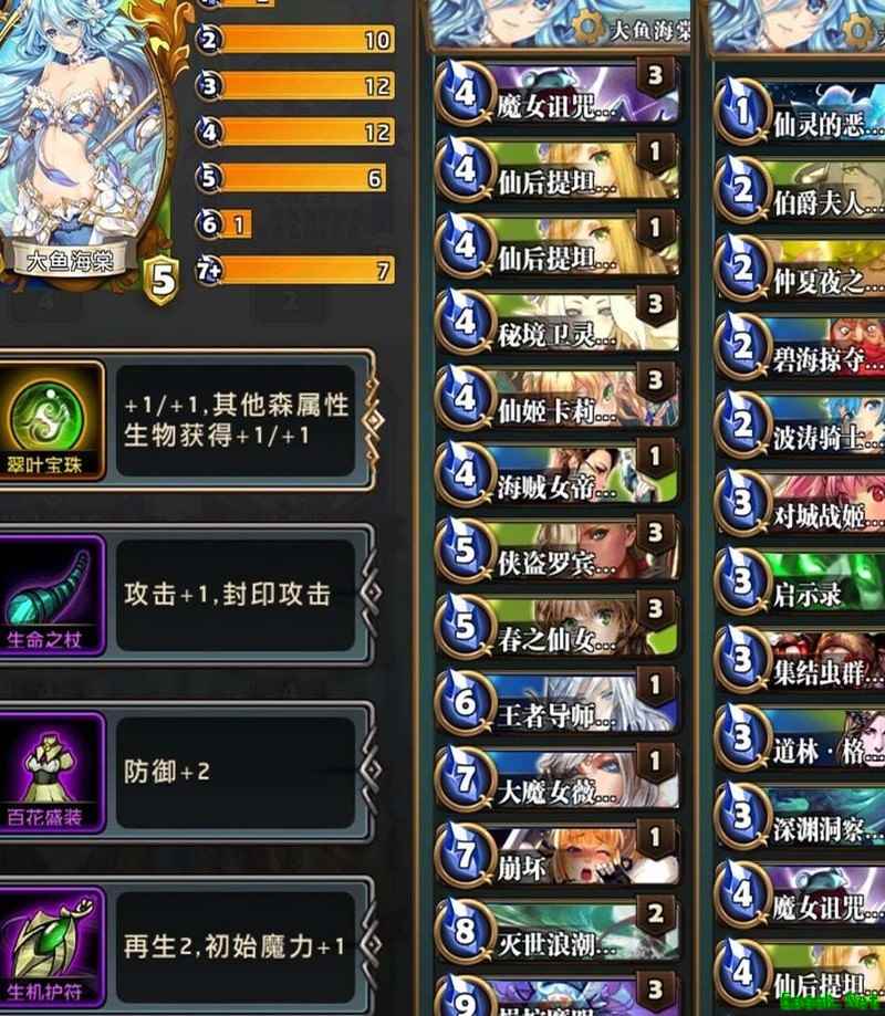 这套卡组属于典型的绿色人鱼体系,充分利用了绿色单位身材优质的特点。下面将介绍我在使用和优化卡组过程中的经验与体会。