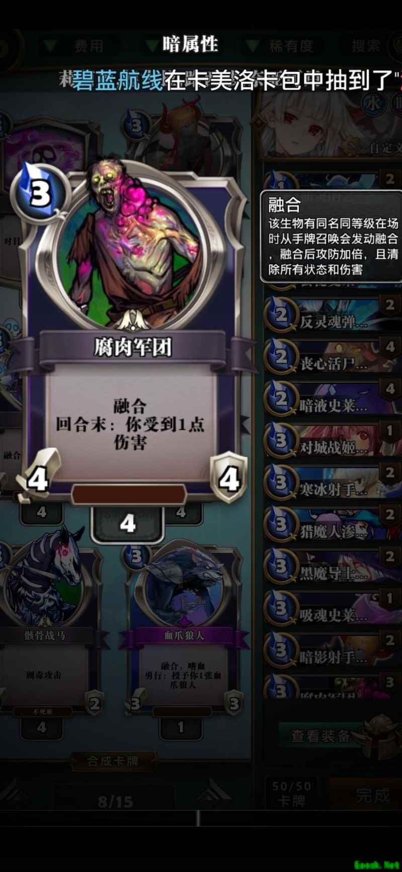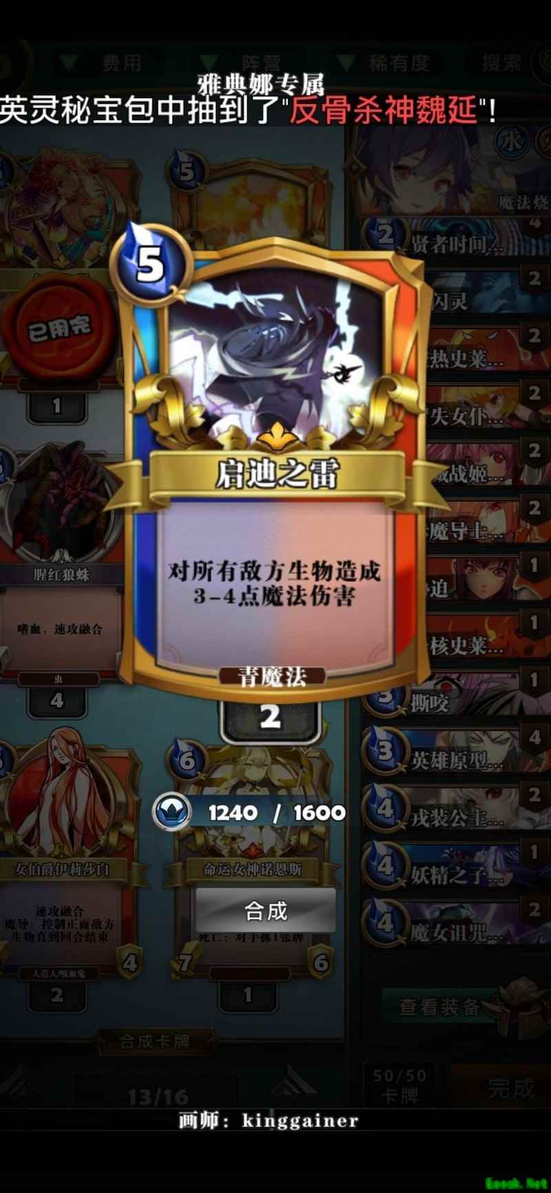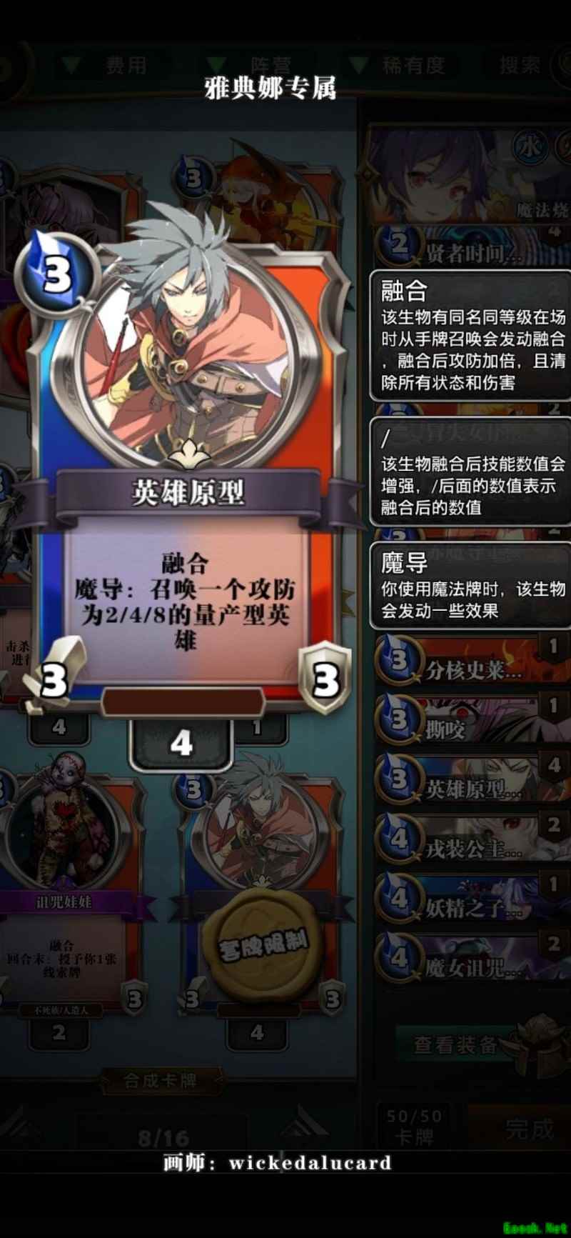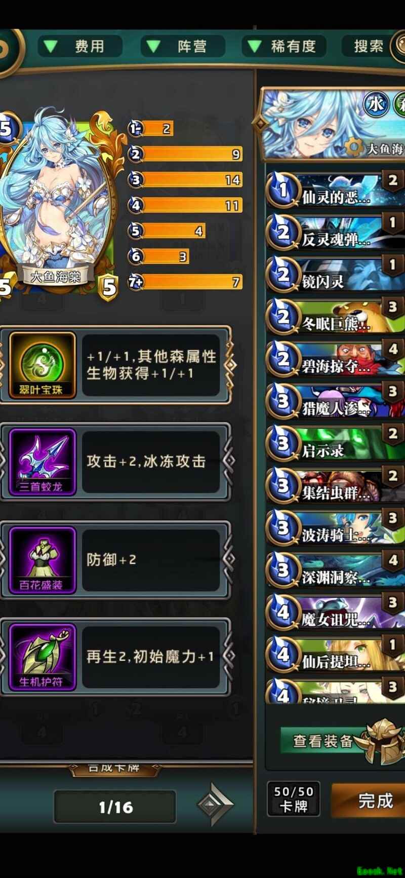 小心这家伙,一拳就能击败你。不过到了那个费用,也能用魔眼偷来应对。对阵女武神主要看谁运气更好,只要能多抽牌、多解怪,人鱼依然占据优势节奏。