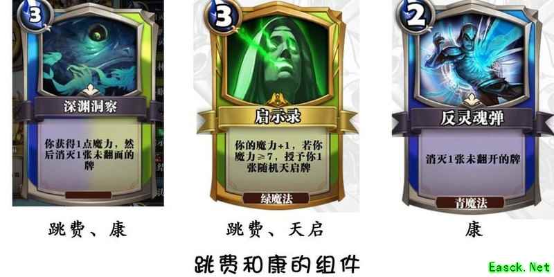 本卡组包含6张法术跳费与7张生物跳费。玩家可根据实际需求灵活调整跳费数量,例如天启鱼卡组通常配置8张以上法术跳费,以便更快进入后期,从而容纳更多高费强力卡牌,增强后期作战能力。