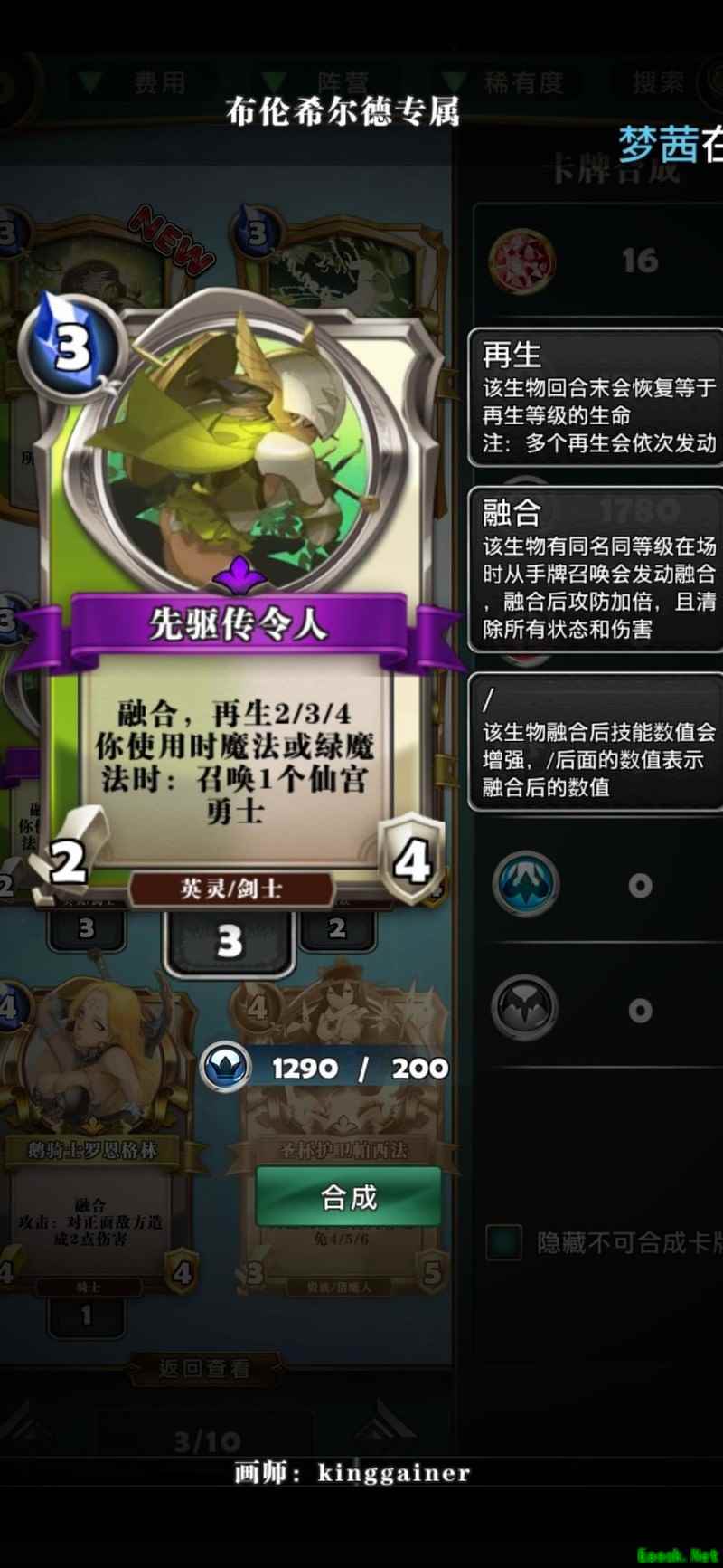 秘境守护者梅芙造价仅需1200魂,无需橙晶,抽不到可合成。只要场上存在其他绿色生物,其属性将大幅提升。再生效果覆盖己方所有绿色单位,只要能精准击杀对手,便可实现近乎无伤回复,续航能力极强。