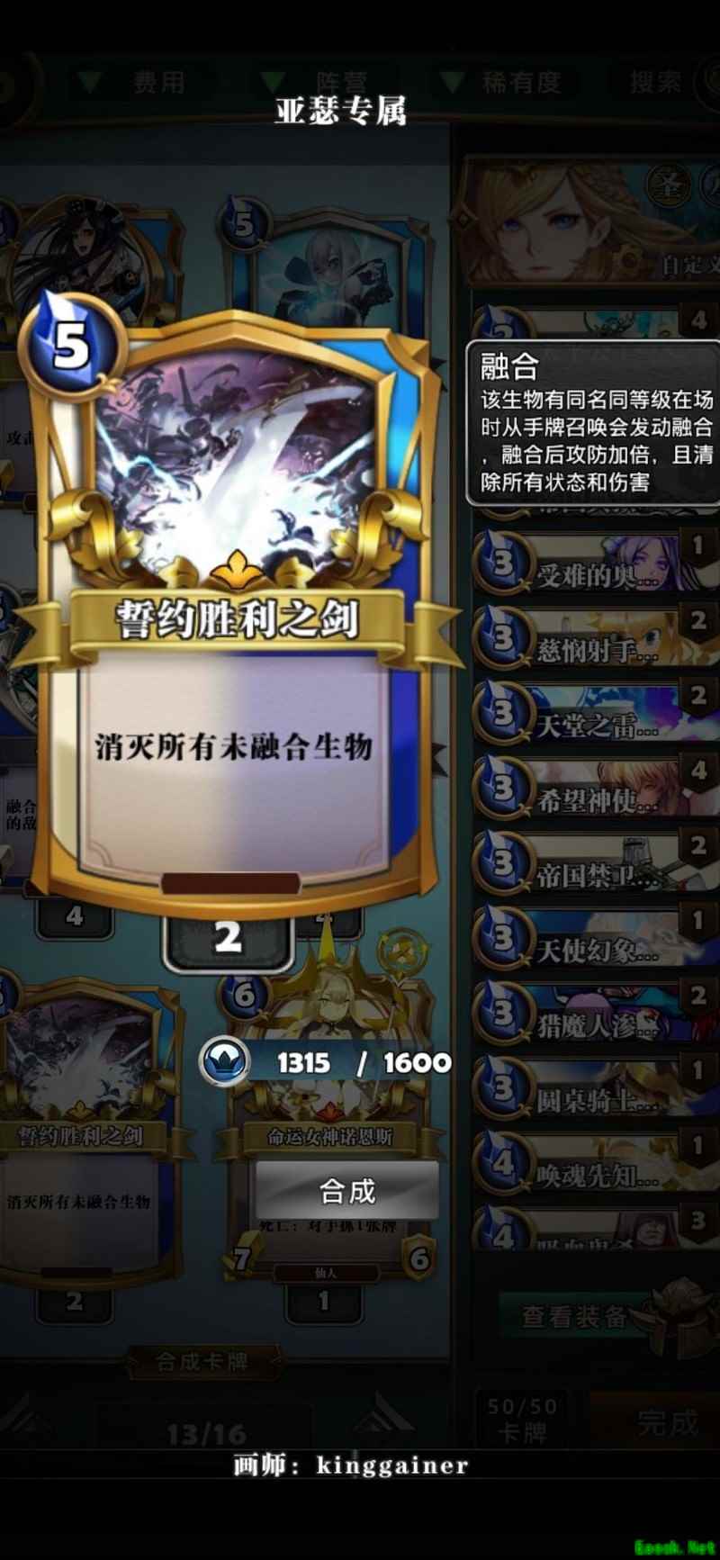 崩坏能破坏对手关键卡牌,相比9费魔眼费用更低且无孤注风险,若成功窃取融合大怪将极为有利,若有条件建议投入两张。