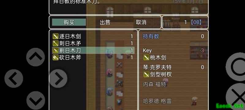 此时不必急于出发,先返回装备店将先前采集的草药出售,再为琴妈购置一把小木刀并装备。如此一来,她便能施展专属技能雪舞天下。游戏中有个常被忽略的细节:每个技能图标左上角均有标记,用以表明该技能属于剑技、刀技或其他类型。唯有装备对应类别的武器,角色才能使用相应的技能,合理搭配至关重要。