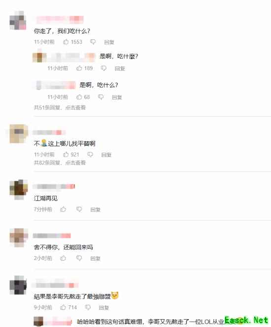 玩家纷纷表达了对他的不舍,还有人玩梗被“李哥”熬走了。