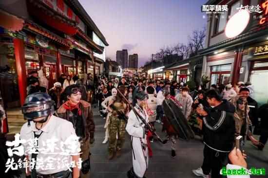 除了试玩之外,Cos成僵尸怪物以及几个新职业的Coser们组成的队伍在街道上缓缓前行,把古色古香的潘家园变成了阴兵借道百鬼夜行的场景。无数等待的玩家和路人,也饶有兴趣地和Coser们互动,合影和互动的人潮随着游行队伍缓缓前行,几乎堵塞了整条街道。