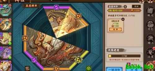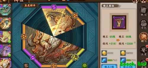 玩家可通过精工与淬炼逐步强化阵法碎片,提升其属性。每种阵法按方位分为八个碎片,从12点方向起顺时针依次为:乾、坤、巽、震、坎、离、艮、兑。其中,乾、巽、坎、艮四个位置的属性固定,其余位置则随机生成。在进行精工升级时,应优先提升乾位碎片,因其可稳定增加技能攻击力;随后选择其他四个随机位置中已出现技攻属性的碎片进行强化。合理分配资源,聚焦关键位置,能更高效地提升整体阵法实力,为后续挑战奠定坚实基础。