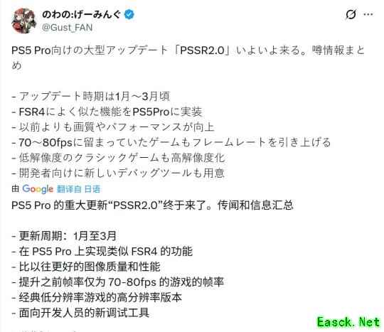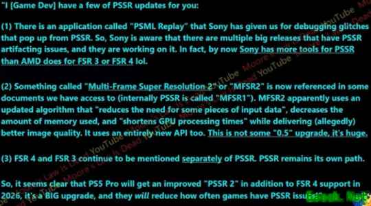 因此,看起来已经相当明确:PS5 Pro将在2026年获得改进版的“PSSR 2”,并同时支持FSR 4。这将是一次幅度巨大的升级,而且还能明显减少游戏中出现 PSSR 问题的频率!”