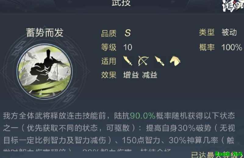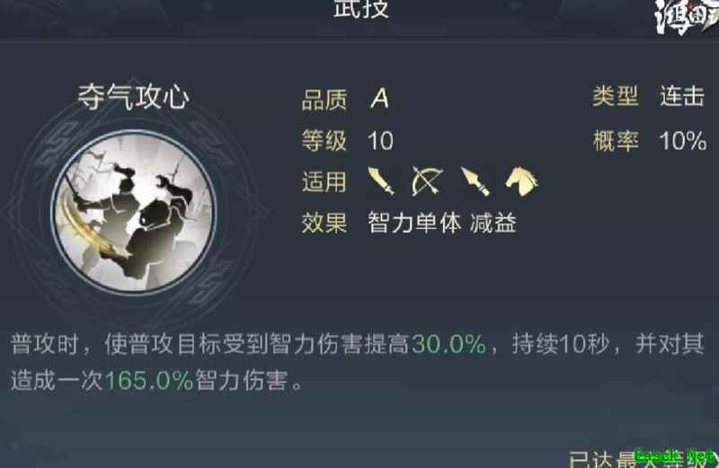 2号武技推荐夺气攻心,其效果类似于智力型贯颐奋戟,能提升目标所受的智力伤害,与谟谋守谦搭配使用时,协同效应显著,大幅增强输出能力。