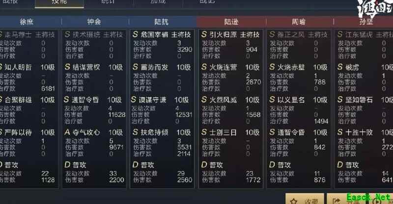 推荐2号武技选择扶危持倾,可对敌造成智力伤害并恢复自身兵力,确保主将陆抗具备持续作战能力。其治疗效果还可与钟会共享,有效增强双核阵容的生存与续航能力。