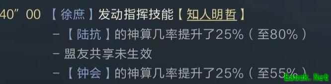 加入徐庶后,可进一步增强神算效果,使陆抗的神算最高提升至80%,钟会达到55%。徐庶自带技能能依据队友造成的伤害恢复兵力,兼具前排与辅助功能。队伍成型后采用双核体系,搭配适宜的智力连击技能。徐庶必须携带合聚群雄,另一技能优先选择辅助类,如回血、护盾或净化等,以提升整体持续作战与生存能力。