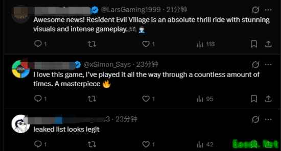 根据爆料,这些游戏将于1月20日正式上线。从目前来看,一月的新增游戏相当有吸引力——至少从众多玩家的反馈来看,大家都非常满意。有玩家表示“有《生化危机8》简直太棒了,我超爱这款游戏,已经通关无数次了,真正的杰作”“还好我刚好把《如龙8》卖掉了,时机完美。”“神级阵容!等《生化危机8》等了好多年了。”“如果属实,这就是一份非常强的名单。就算只有这些我也已经很满足了。”