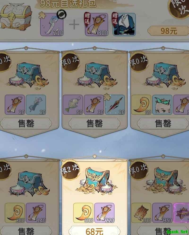 购买礼包数量可解锁上方赠礼,免费礼包计1次,机缘购计2次。