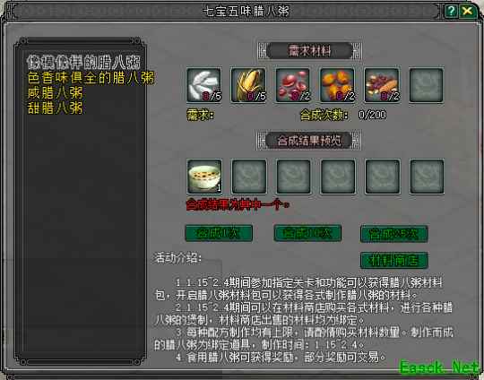 活动期间,大侠参与副本、日常活动可获取食材制作四种腊八粥赢取经验、稀有道具等奖励,春启积分可兑换额外好礼。