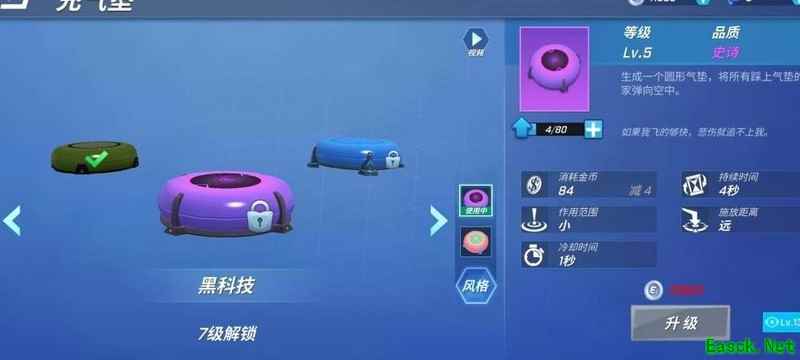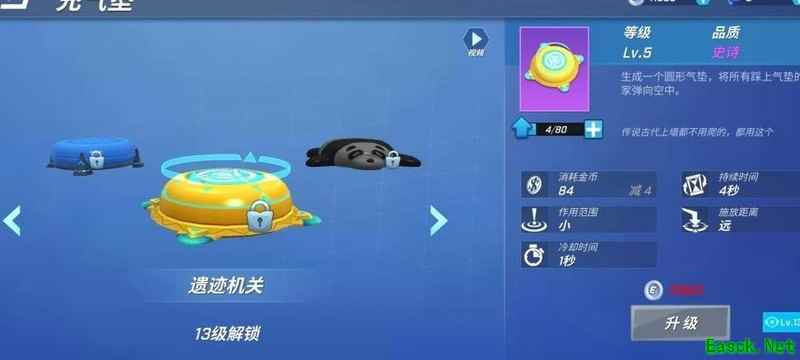 充气垫为双方阵营通用道具,使用后生成圆形气垫,可将踩踏的玩家高高弹起并抛向远处。每次使用需消耗100金币,但随着道具升级,金币消耗会逐步降低。升级还能免费解锁多种全新外观皮肤,提升视觉体验与战术灵活性。