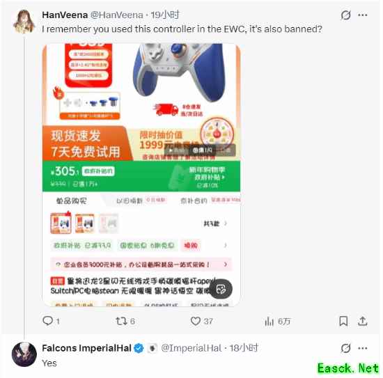 ImperialHal认为这一决定并不合理。他指出,在包括电竞世界杯(Esports World Cup) 在内的其他大型赛事中,多名选手都被允许使用具备类似功能的手柄;同时,这款ZD手柄在过去的ALGS赛事中也曾被允许使用。