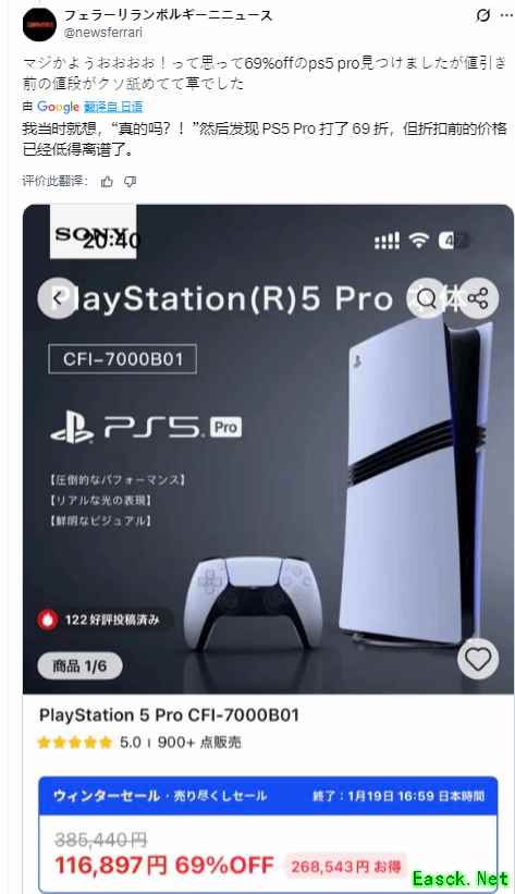 近日,一位日本网友在阿里巴巴旗下跨境电商平台“全球速卖通”(AliExpress)上,以超低价购入了一台PS5 PRO,此事在玩家社区引发热议。