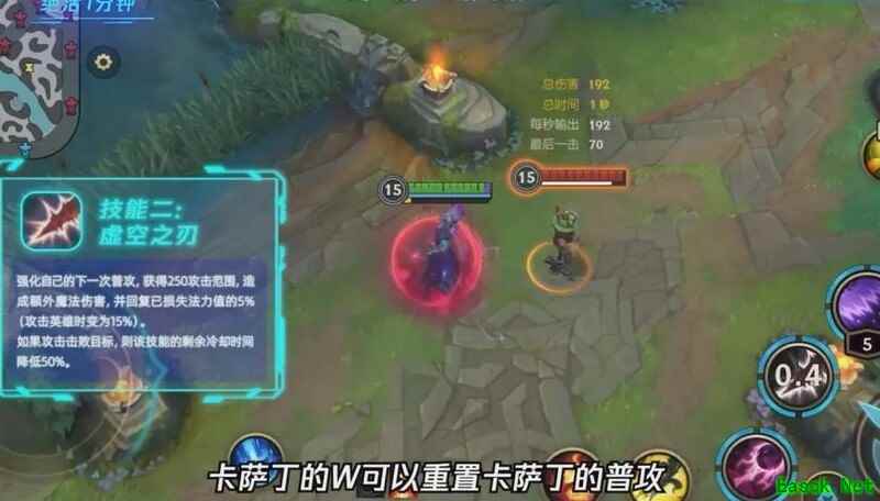 W(2)技能可重置卡萨丁的普通攻击,对线期追求最大伤害时,推荐使用AWR(A24)连招来提升输出效率。
