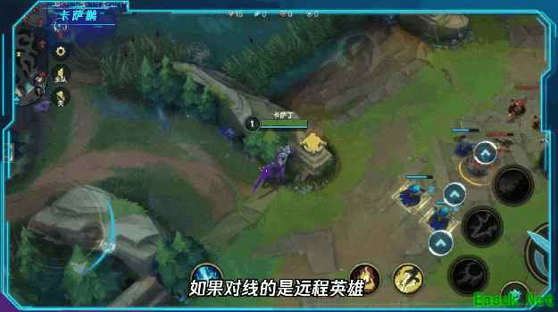 卡萨丁的W技能可提升250攻击距离,对线近战英雄时,可利用此特性安全地远程消耗对手血量。