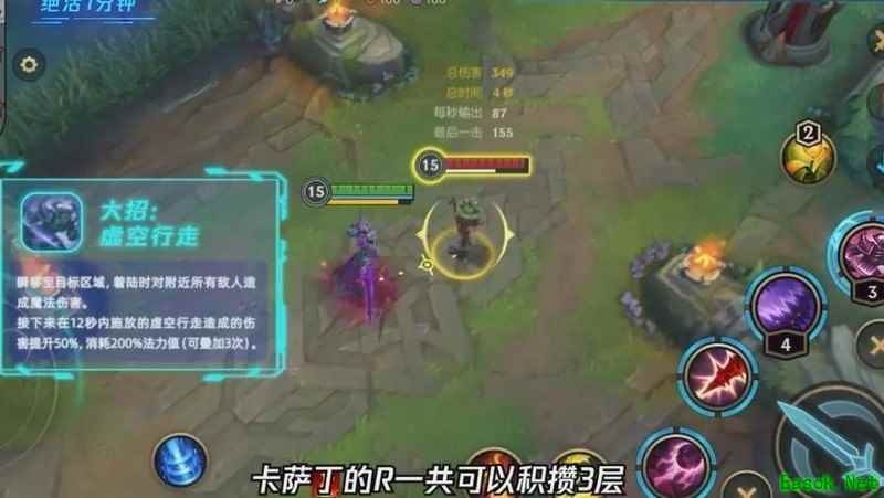 卡萨丁的R(4)技能是其核心所在,最多可叠加三层。每次施放都会累积一层能量,每层都会提升下一次R技能的法力消耗,并增强其伤害效果。合理利用层数叠加,能显著提高爆发输出,是战斗中至关重要的机制。