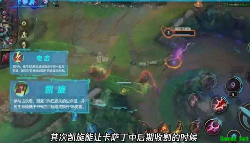 卡萨丁在手游中可通过E技能衔接闪现,实现突袭效果,令对手措手不及,难以及时应对。