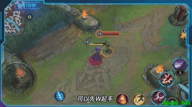 对线时若对手为近战且缺乏远程消耗能力,可一级选择学习W技能,通过AW连招快速打出伤害,或在其补兵间隙用W技能突袭消耗血量,压制对方状态。