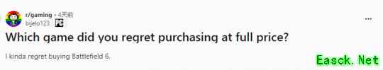 近日国外Reddit论坛网友bijelo123发帖:“哪款游戏让你后悔全价购买”,这引起许多玩家的共鸣,他们积极讨论起来。