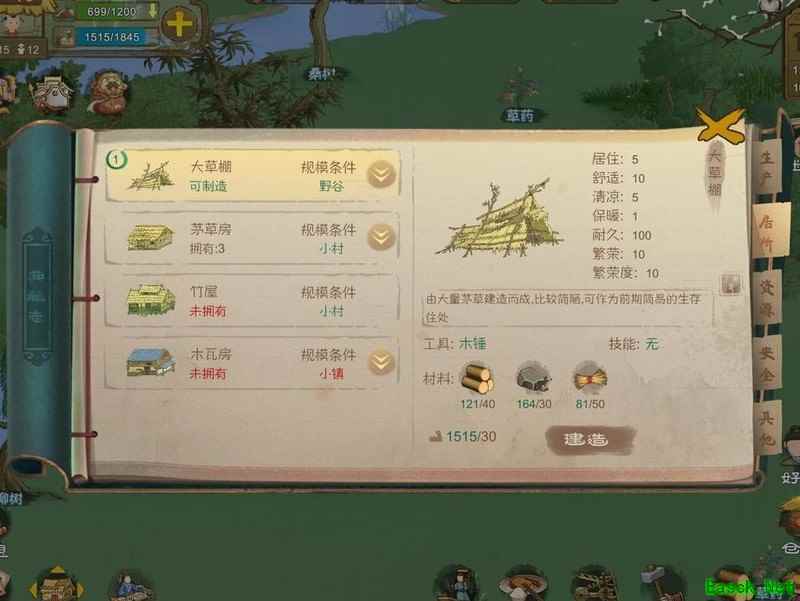 建造两座大草棚(完成任务可获一份材料),收集五十份茅草,安排单身男女共同居住,方可促成婚配。