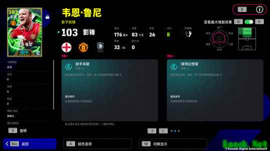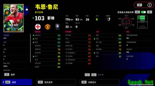 鲁尼增能属性为【射手本能 +3】,进攻能力全面增强的他化身禁区猛兽,搭配上【无定型射门】特殊技能,他在乱战中也能完成爆杆!拥有【无定型传球】技能的他更是成为战术支点,背身扛人时的一记隐蔽输送,往往便是撕裂防线的绝杀助攻!