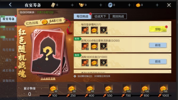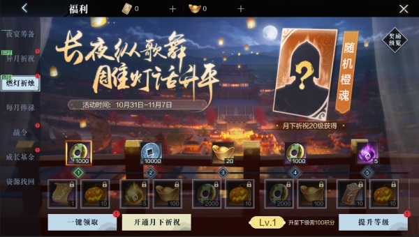 2、玩家参与夜宴筹备限时活动可以获取活动道具南瓜灯;