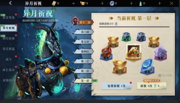 4、每次祈祝会增加线索值,线索值达到满值则必定获得珍稀奖励;