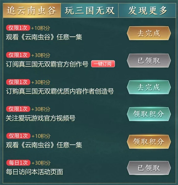 2、在手机端腾讯视频观看影视《云南虫谷》完成任务,可累积积分兑换三国好礼。