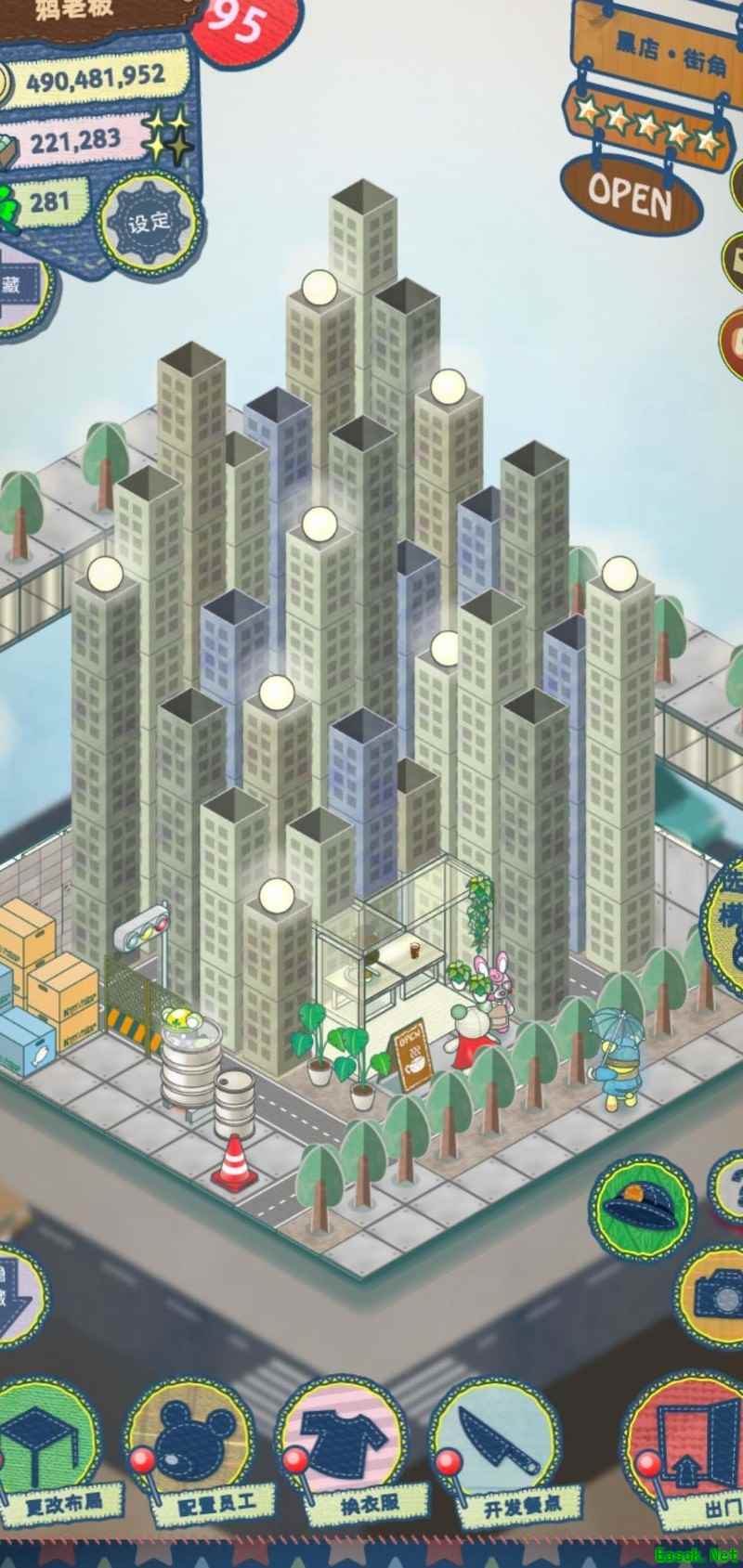 制作冰咖啡需配备冰箱与咖啡机,若按2x3布局摆放会显得局促。实际设计中将冰箱置于后方,借助高楼遮挡,再用建筑覆盖咖啡店一半屋顶,视觉上压缩为1x3格局,整体更显紧凑精致,空间利用也更为高效,呈现出小巧别致的效果,既满足功能需求又提升美观度。