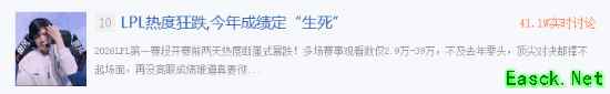 对此有不少网友猜测,LPL热度的衰退,是否是因为这两年一个国际赛事的冠军都没拿到?截止至发稿时,话题“LPL热度狂跌,今年成绩定‘生死’”登上了贴吧热议。