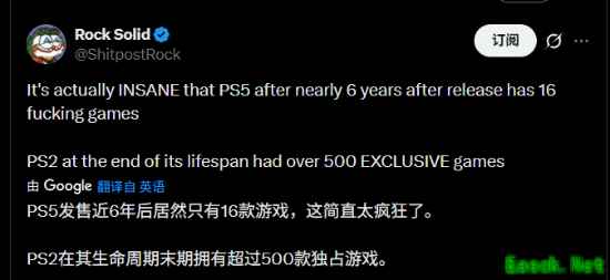 有玩家表示:“不仅如此,(PS2)那500款游戏都独具创意,勇于尝试新想法,玩起来也充满乐趣。反观现在这16款,有一半都是些千篇一律、规避风险的公式化作品。”“我的PS5已经吃了将近四年灰了。”