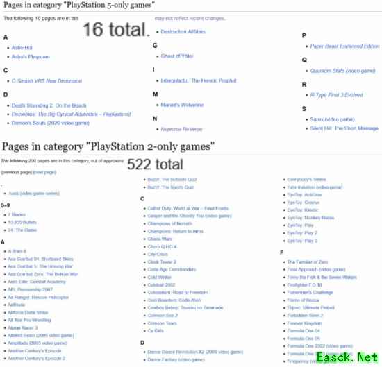近日,一条对比两个时代独占游戏数量的讨论帖引发热议:数据显示,PS5至今只有16 款“真正的”独占游戏,而PS2的独占游戏数量超过500款。当然,这是严格的定义——如果算上PC移植游戏,PS5的主机独占游戏数量会更多一些,但较PS2仍有很大差距。