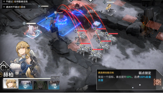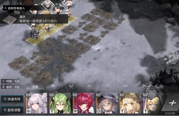 相比之下,这次测试的时候,地图难度从第三章开始越来越高。比如有一关,关卡对于我们三星通关的要求是击败所有敌人,但是在我们布阵的位置,和怪所在的位置之间,有一大片泥泞的道路。在这种地形上如果你想要移动,就需要消耗更多的行动力。但如果你说我按兵不动,只等对方走过来行不行?这一关没有设置什么需要多少回合内过关,但是如果你不往前推进,敌方在攻击范围内检测不到我们这边的人,那么敌方也不会过来。那么在这种不得不过障碍的情况下,怎么过就是个很讲究的问题了。