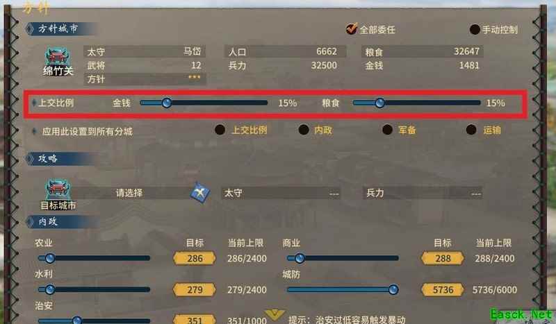 征兵与养兵皆需粮草军饷,务必确保附属城池钱粮储备充足,以防不济。