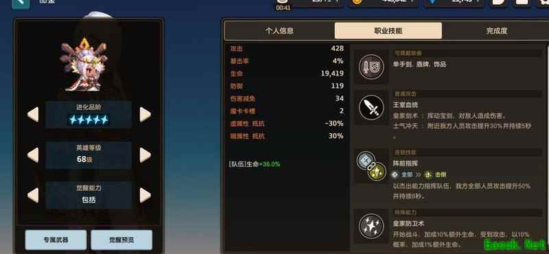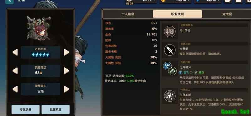 提到她主要是基于两个优势:其一,队伍加成提供罕见的远程防御效果,在常规战斗中表现不俗,尽管当前土队更为流行;其二,五星被动自带复活机制,显著提升迷宫等副本的容错率,避免因一丝血失误导致重来。此外,她的专武技能适合清理远程敌人,是土系进化最后一关挂机通关的有效手段。