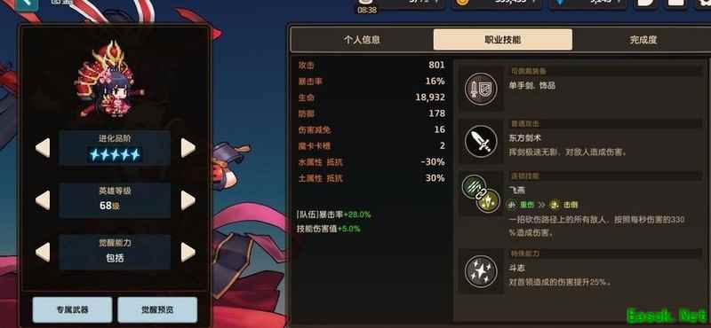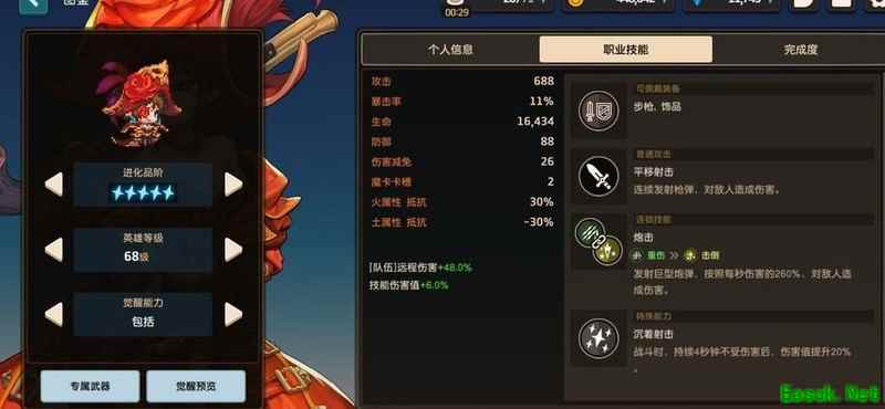 百搭的爆击率使其在多种关卡中表现优异,攻击模式决定其不可或缺。五星被动对boss有奇效,外观帅气。虽依赖专属武器,但无需强求突破至68级。