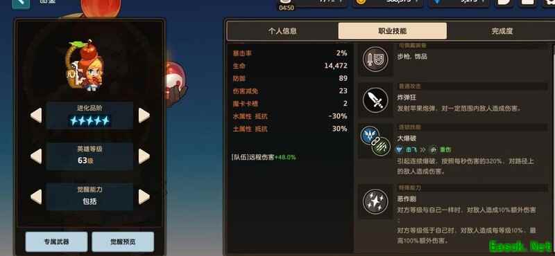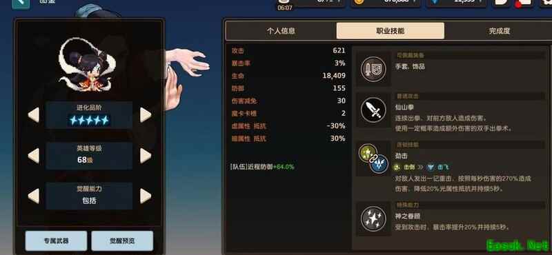 五星后自带20%以上土系攻击加成,无需觉醒,可融入平民土队,攻击可穿透怪物但无法穿墙。