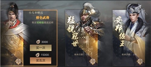 值得注意的是,这三种新的卡包均为铜币招募!测试期间,玩家每天有5次招募机会,均有机会获得橙色武将,助力玩家组建强有力部队。