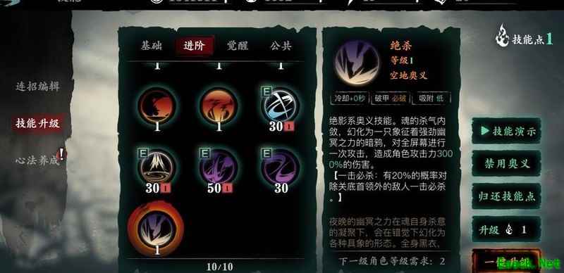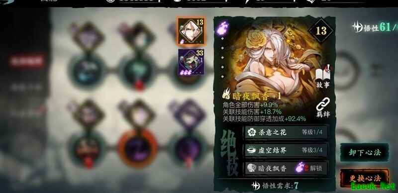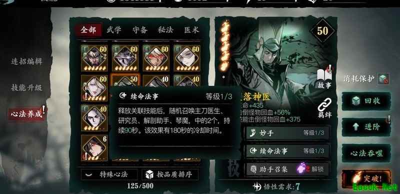 绝影心法除前述之外,可保留解锁双绝技的堕落神医,适用于打塔,30层可获取黑魔伤图纸。