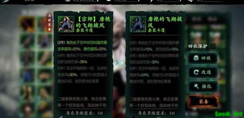 宗师套装为普通版的进阶形态,属性效果更为强大,具体所示。