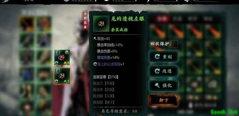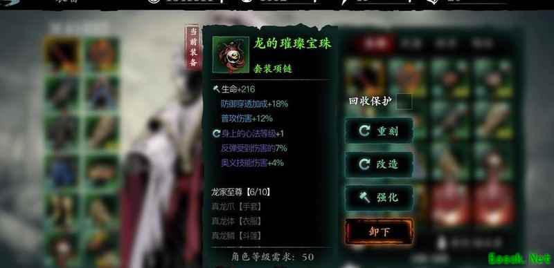 六件套真龙装备,可配副心法,显著增强攻击力的强力套装。