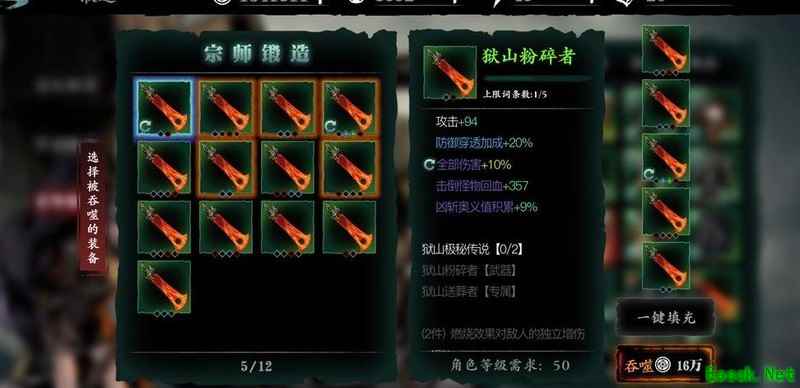 该装备可通过多种图纸产出,概率较低的情况暂不讨论。也可由小女孩锻造或宗师锻造,通过吞噬相同装备进行升级,所需数量视词条而定,通常为数件至数十件不等,每次吞噬消耗3.2万铜钱。