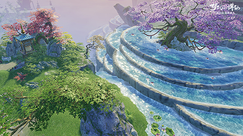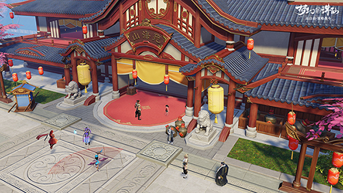 设计场景时,我们从构想到实现,要考虑很多的细节。首先要在合理的地形上规划,还要结合原著的特点和当下流行的审美,设计中的各个元素也融合了传统文化。就像青云门,我们加入了很多祥云纹饰和仙鹤石雕,场景立刻就有道家祥和、仙气缥缈的感觉。