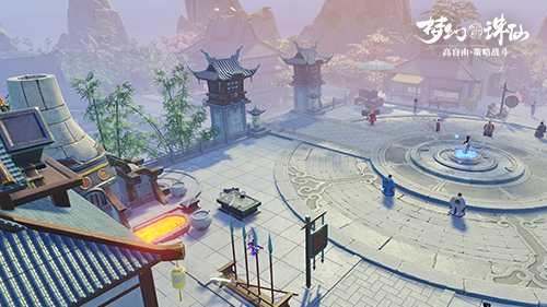 依托HDR高动态氛围自发光与动态点光源,游戏真实模拟现实的光影明暗变化。夜幕中,灯火的明灭光影让场景更加梦幻。使用电影级后期中的色彩映射与景深效果处理,即使此时不能在街道庆贺佳节,也能在《梦幻新诛仙》的场景中身临其境的感受元宵美景。