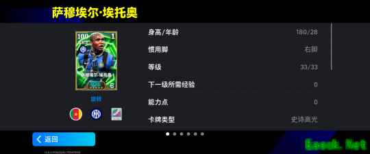 埃托奥增能属性为【无球跑动 +3】